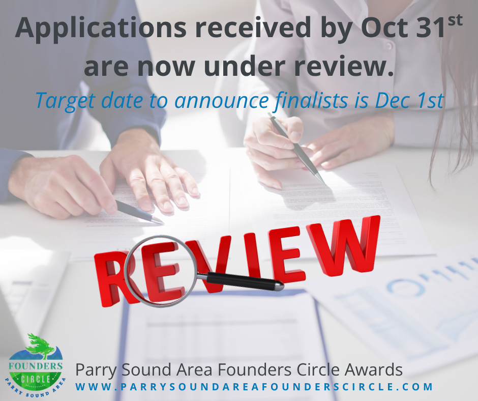 Parry Sound Area Founders Awards Dinner - All finalists will be expected to attend the Parry Sound Area Founders Awards Dinner, targeted for Spring 2026.